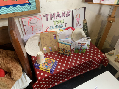 Have you taken a look at the children’s corner lately? Thank you so much to all those talented people that have created this very special space – with room for activities, each week, that dovetail with the Gospel at the main service; a place to play at any time the church is open; a library area, soft toys, a mat for cars etc and a comfy pew for those soft toys needing a rest! The displays are wonderful – eye catching but also telling us important stories.