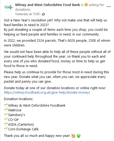Witney Food Bank – resolution?
