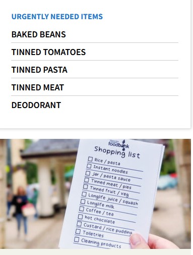 Witney Food bank needs….