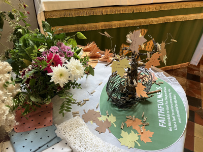 And now for something a little different … an installation to celebrate our Harvest offerings and gifts and to show, beautifully, the gifts we are given and should use.  Thank you to all those who decorated the church and created the installation.  Do go along and take a look if you haven’t seen it yet – it is in the Cokethorpe “corner”.
