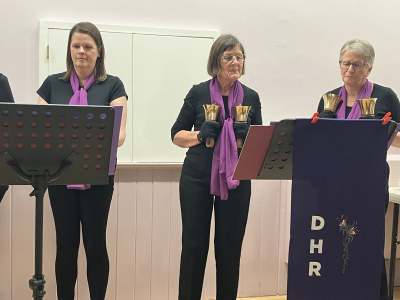 Special thanks to all those who baked for the occasion, those who helped on the evening and those who provided entertainment, the Ducklington Handbell Ringers and Robin’s band.