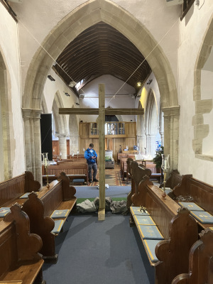 preparing the cross for Good Friday