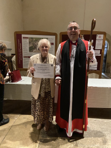 It is with great pleasure that June Allen was nominated to be inducted in to the Fellowship of St Birinus in October 2024.  This is in recognition of the magnificent work that June has long done for St Bartholomew’s and, indeed, continues to do.  Thank you June.  Take a look at the pictures.  You can also take a look at the St Birinus page here to find out about its history and the previous inductees from St Bartholomew’s.