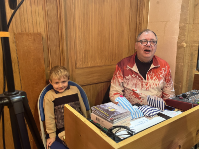 Carol singing around the tree (indoors!) 2024